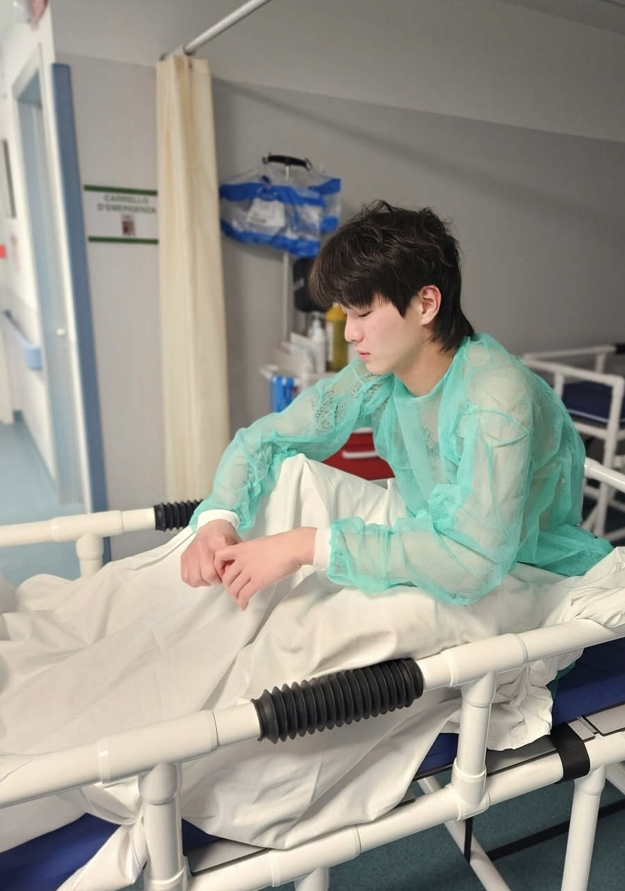 연습 도중 착지 실수로 무릎이 다친 거 같아 실려나가는 일이 있었습니다. 그렇지만 금방 괜찮아지는 거 같았고 기다려주시고 기대해 주시는 분들이 있기에 3차런만이라도 타보려고 다시 올라갔지만 무릎의 부상 정도가 생각보다 심해서 병원행을 결정하게 되었습니다.