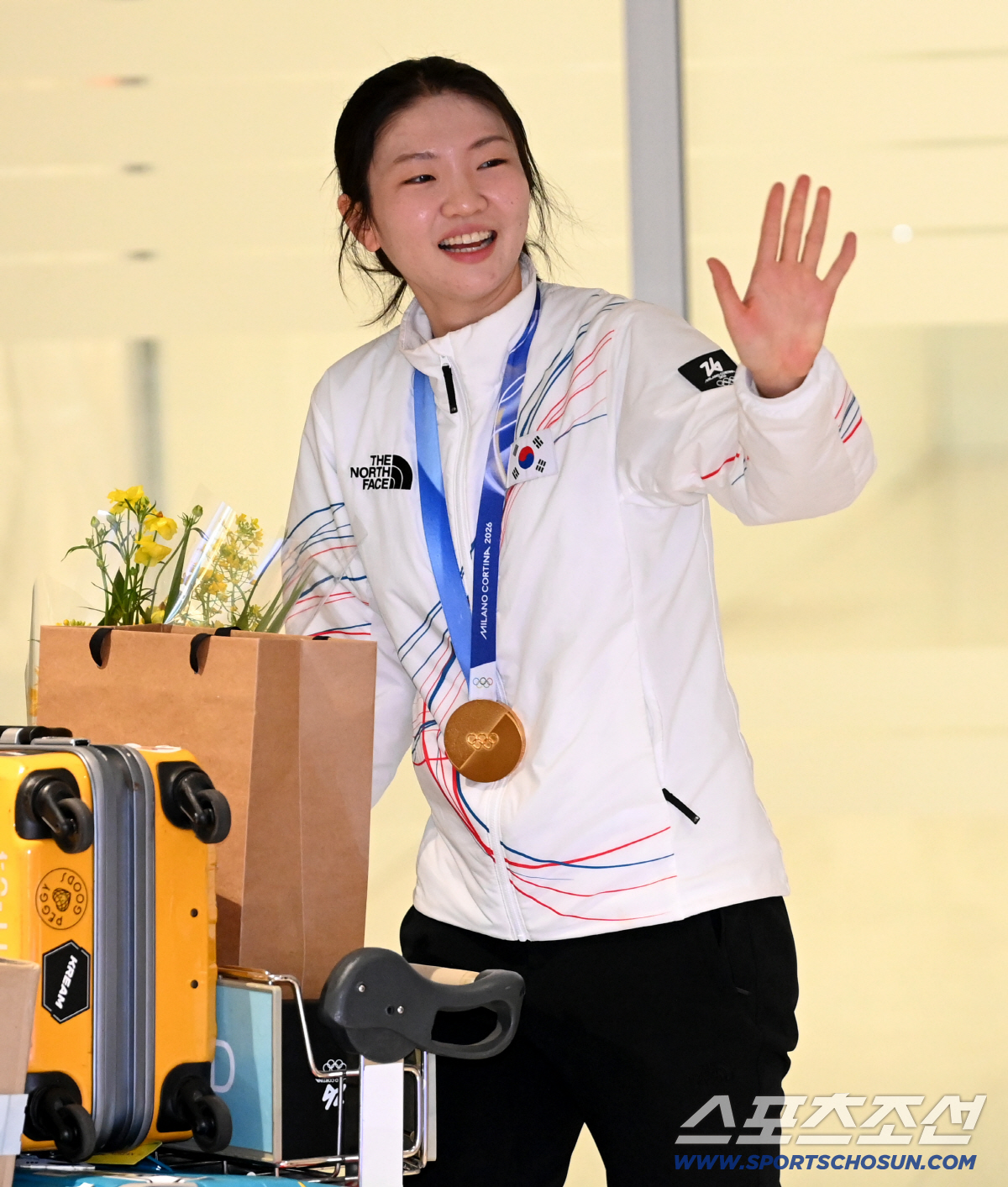 밀라노·코르티나담페초 동계 올림픽을 마친 대한민국 선수단이 24일 인천공항을 통해 귀국했다. 입국장으로 들어서는 심석희의 모습. 인천공항=허상욱 기자wook@sportschosun.com