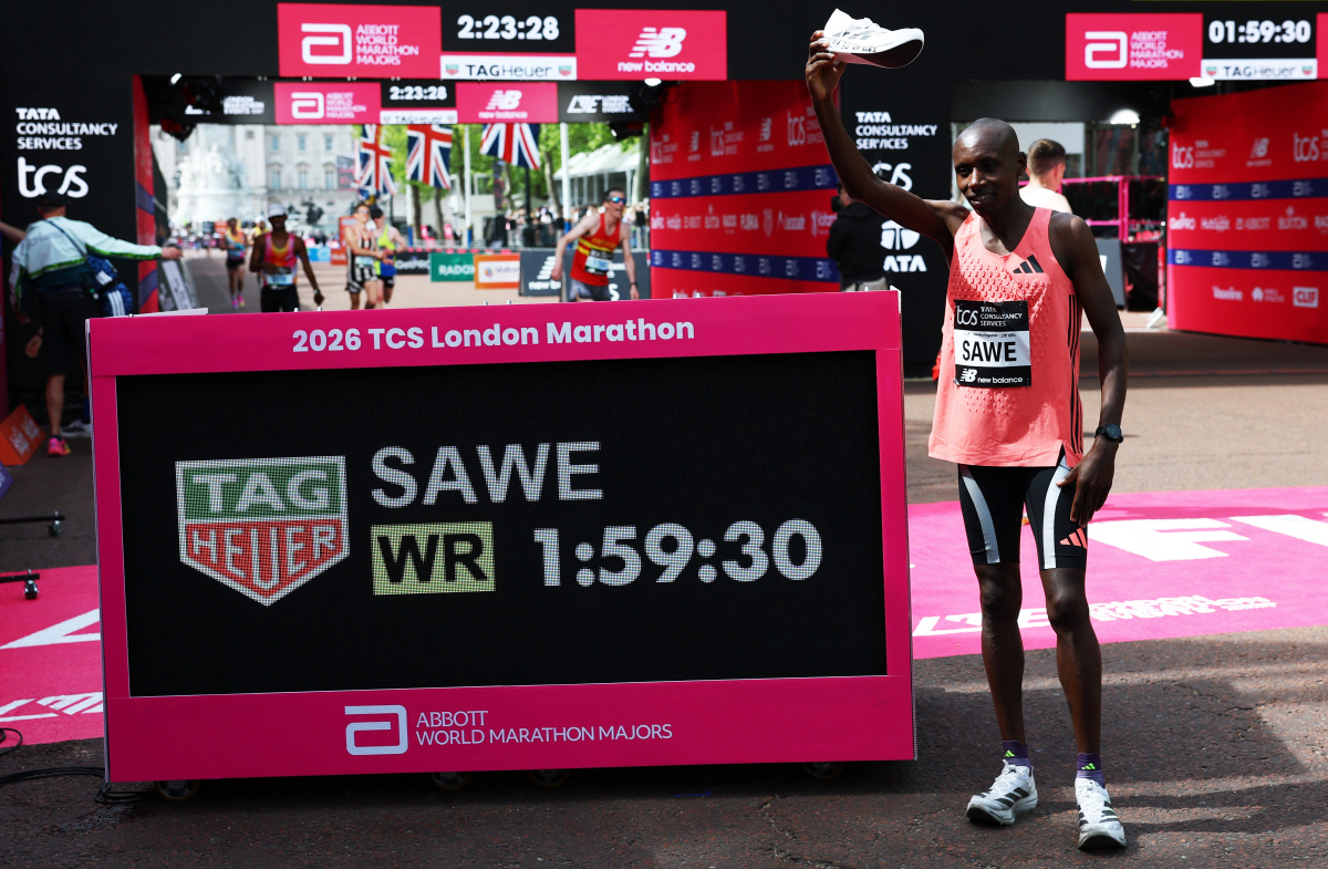 [스포츠조선 박찬준 기자]마라톤 풀코스 '2시간의 벽'이 깨졌다. 사바스티안 사웨(케냐)는 26일(한국시각) 영국 런던에서 열린 2026년 런던 마라톤에서 42.195㎞ 풀코스를 1시간59분30초에 완주했다.
