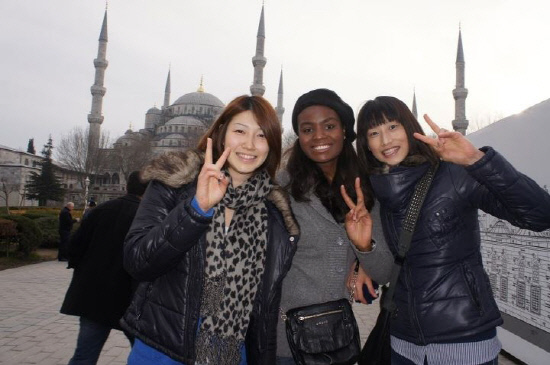 친구들과 이스탄불 여행 도중 브이(V)자를 그리며 사진촬영을 하고 있는 김연경(오른쪽). 사진제공=김연경
