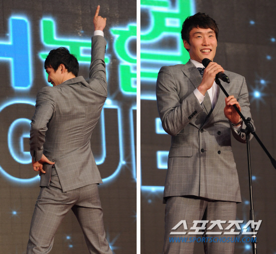 남자부 신인상을 수상한 최홍석이 엉덩이 댄스 세리머니를 펼쳐 보이고 있다. 송정헌 기자 songs@sportschosun.com