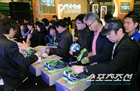 23일 서울 장충체육관에서 NH농협 V리그 시상식 및 사랑의 나눔행사가 열렸다. 시상식을 마치고 열린 사랑의 바자회에서 선수들의 내놓은 여러가지 물품들을 관심있게 바라보고 있는 배구팬들. 장충동=송정헌 기자 songs@sportschosun.com