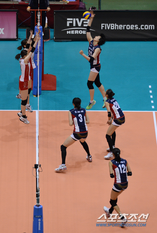 김희진이 10일 일본전에서 스파이크를 날리고 있다. 부산= 김경민 기자 kyungmin@sportschosun.com
