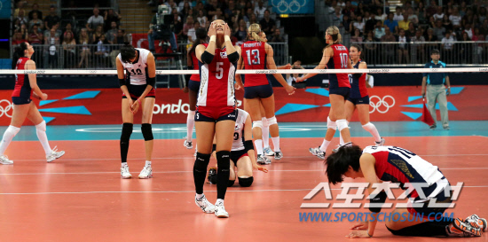 2012 런던올림픽에서 36년만에 메달사냥에 나선 한국여자배구팀이 세계1위 미국팀과 경기하고 있다.하고 준결승에 진출했다.9일런던의 얼스코트에서 열린 2012 런던올림픽 배구 4강전에서 미국전에서 경기하고 있다.3세트 경기를 펼치고 있다.