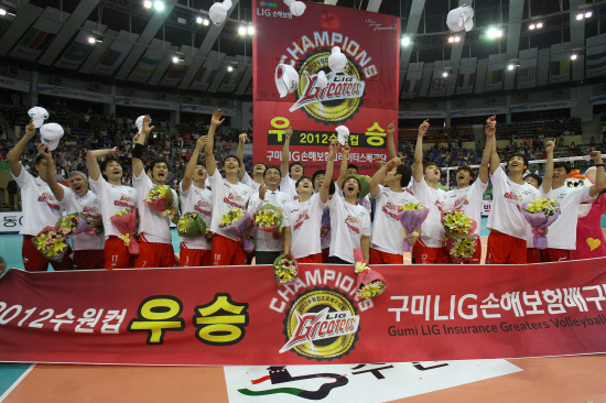 LIG손해보험이 우승을 상징하는 최고의 별을 새겼다. 26일 컵대회 정상에 섰다. 1976년 금성 배구단으로 창단한 이후 컵대회와 정규리그를 통틀어 첫 우승이었다. 1995년 제76회 전국체전에서 우승을 차지한 적은 있다. 그러나 정규대회로 보기 어렵다. 비록 시즌 챔피언결정전 우승은 아니지만, 컵대회 우승도 LIG손해보험에는 값졌다.