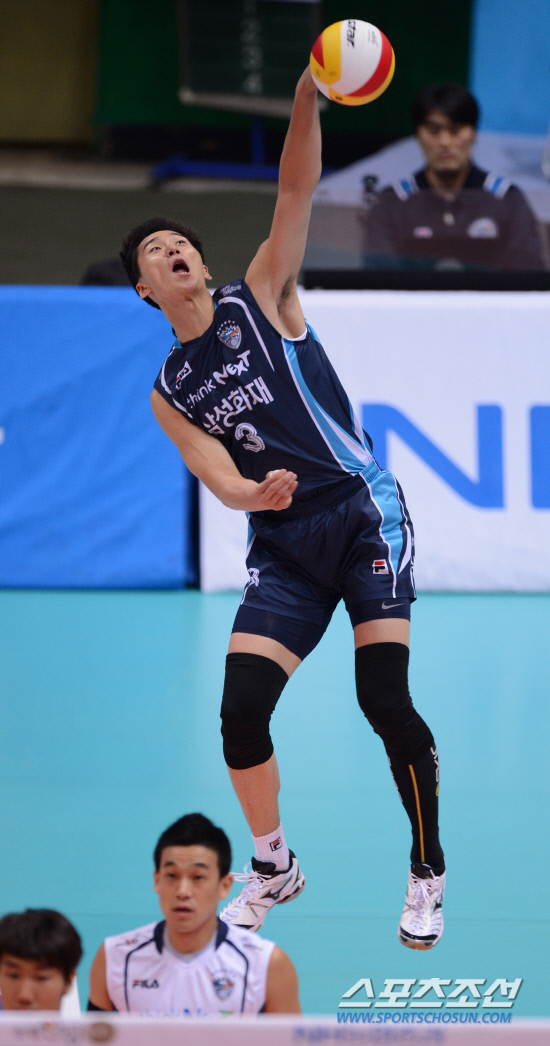 6일 오후 인천 도원실내체육관에서 2012-13 프로배구 삼성화재와 대한항공의 경기가 열렸다. 삼성화재 박철우가 대한항공 진영을 향해 서브 공격을 시도하고 있다. 인천=김경민 기자 kyungmin@sportschosun.com /2012.12.06.