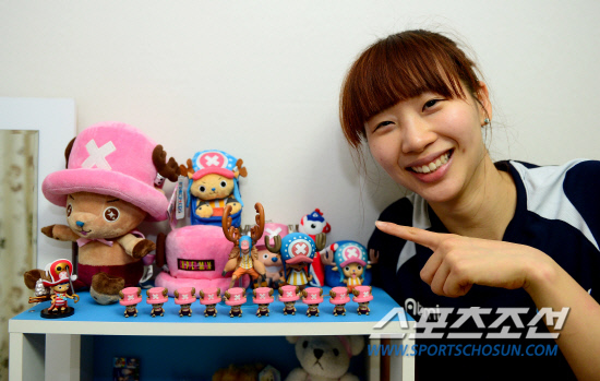 수원 장안구 IBK기업은행 알토스여자배구단 숙소 탐방을 했다. 이소진이 그동안 모아온 만화 캐릭터를 자랑스럽게 보여주고 있다. 수원=송정헌 기자 songs@sportschosun.com