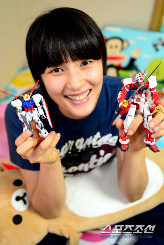 수원 장안구 IBK기업은행 알토스여자배구단 숙소 탐방을 했다. 김희진이 본인의 방에서 보물처럼 아끼는 프라모델 건담 모델을 보여주고 있다. 수원=송정헌 기자 songs@sportschosun.com