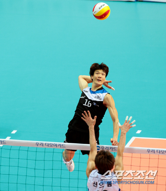 문성민의 빈자리는 전혀 보이지 않았다. 오히려 이날 경기력만 놓고 보면 특급용병과 비교해도 손색이 없었다. 송준호는 홍익대 3학년을 마치고 지난해 프로 신인드래프트에 참가해 1라운드 4순위로 현대캐피탈에 지명됐다. 원래 대한항공이 점찍었던 선수였지만 앞 순위 지명권을 가졌던 현대캐피탈이 낚아챘다. 프로에 들어온 뒤 첫 시즌에는 출전 기회를 많이 얻지 못했다. 외국인 선수와 주전 선배들에게 막혀 거의 벤치를 지켰다. 원래 육상을 하다가 뒤늦게 배구로 전향한 탓에 기술적으로 부족한 점이 많았다. 하지만 김 감독을 만난 뒤 기량이 급성장했다. 김 감독은 송준호의 공격과 블로킹 자세를 일일이 교정했다. 무엇보다 자신감을 심어주려고 애를 썼다. 김 감독은 연습와 비교해 실전에선 제 기량을 다 발휘하지 못한다며 "똥개"라고 부르며 더욱 독해질 것을 주문했다.