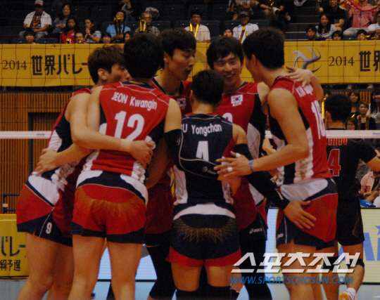 박기원 감독이 이끄는 한국남자배구대표팀이 올림픽 유치 성공의 흥분이 채 가시지 않은 일본에 제대로 고춧가루를 뿌렸다. 한국은 8일 일본 아이치현 고마키 파크아레나에서 열린 2014년 세계남자배구선수권대회 아시아지역 최종라운드 일본과의 최종전에서 3대0(25-19, 25-20, 25-13)으로 승리했다. 3승을 기록한 한국은 2승1패의 일본을 따돌리고 조1위에게 주어지는 세계선수권대회 출전권을 손에 넣었다. 2006년 일본에서 열린 대회 이후 8년만에 대회출전을 확정했다.
