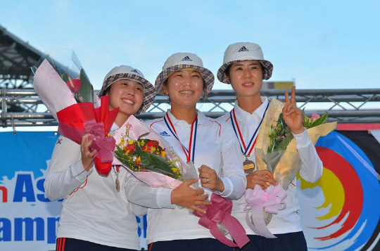 진한 감동을 안겨준 여자 컴파운드양궁 대표팀은 스포츠조선이 제정하고 코카콜라가 후원하는 코카콜라 체육대상 10월 MVP로 선정됐다. 대표팀은 트로피와 상금 100만원을 받는다. 이 건 기자 bbadagun@sportschosun.com