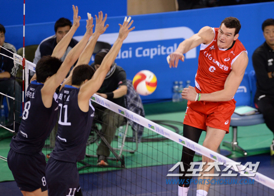 LIG손보는 30일 수원실내체육관에서 벌어진 한국전력과의 2013~2014시즌 NH농협 V-리그 원정 경기에서 세트스코어 3대1(21-25, 25-23, 25-21, 25-11)로 역전승을 거뒀다.
