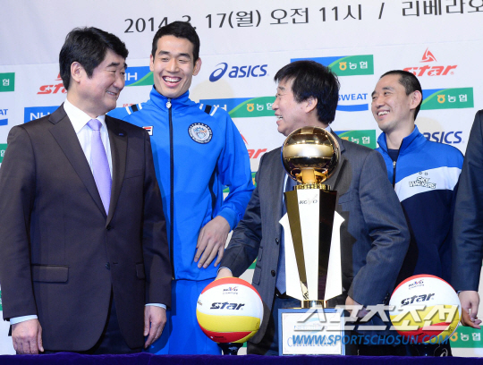 한편, 이 자리에 함께 나선 김종민 대한항공 감독은 선배들의 신경전에 기를 펴지 못했다. 김종민 감독은 최근 3시즌 동안 준우승만 한 것을 돌아보며 "올 시즌 '삼전사기'하겠다"며 다짐했다.