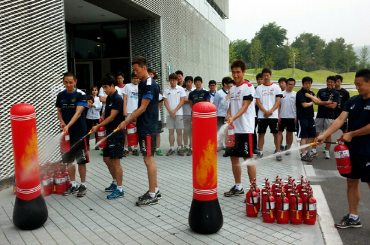 2일 천안 캐슬 오프 스카이워커에서 열린 훈련에는 선수단과 코칭 스태프 전원이 참석했다. 이번 훈련은 사회적으로 이슈가 되고 있는 재난과 사고, 화재 등 긴급한 상황에서 효과적으로 대응하기 위한 것이었다.