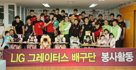 LIG손보 수뇌부도 이번 봉사활동에 참여했다. LIG배구단 구단주 대행 인 김병헌 대표이사 사장을 비롯한 다수의 회사 관계자들이 아이들과 함께 시간을 보냈다.