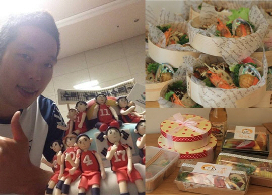 공개된 사진 속에는 '만수르'라는 스티커가 붙여진 종이가방과 선수들의 모형으로 만들어진 케이크 앞에서 포즈를 취하고 있는 최민호의 모습이 담겨 있다.