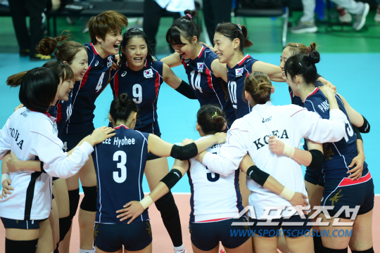 [AG포토] 일본 꺾은 여자배구, 모두 하나되어 어깨동무!