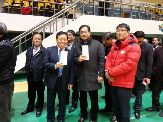프로배구 OK저축은행이 저소득층 청소년에게 성금을 전달했다.
