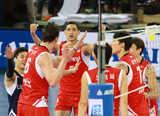 경기가 끝난 뒤 LIG손보 선수들은 우승을 한 것처럼 서로 얼싸안으며 기뻐했다. LIG손보에게 천안은 더 이상 '악몽의 도시'가 아니었다.