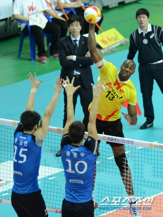 OK저축은행은 28일 대전충무체육관에서 벌어진 정규리그 우승팀 삼성화재와의 2014~2015시즌 NH농협 V리그 챔피언결정전 1차전에서 세트스토어 3대0(25-18, 26-24, 28-26)으로 승리했다.