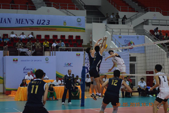 한국은 미얀마 네피도에서 열린 중국과의 4강전에서 3대2(22-25, 25-20, 25-16, 20-25, 15-10)로 승리했다. 높이를 앞세우 중국과 대등한 경기를 펼쳤다. 서로 세트를 주고받으며 파이널세트로 향했다. 5세트에서 중국은 범실로 무너졌다. 특히 박지윤이 결정적인 블로킹을 잡으며 10-6으로 앞서갔고, 손태훈의 속공과 김인혁의 시간차로 점수를 더해 15-10으로 승리했다.