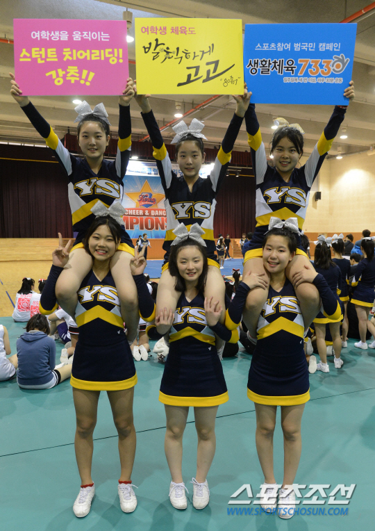 올해 전국학교스포츠클럽 치어리딩대회에는 17개시도 53개팀 892명이 참가했고 이중 여학생은 789명(88%)이었다. 참여학생수가 지난해 12개시도 34개팀 421명에서 2배 가까이 급증했다. "치어리딩의 의미를 배우고 오겠다"던 유성중 '다람쥐'들은 지난 14~15일 전국대회 '중등부 스턴트' 부문에서 용곡중, 인천관교여중에 이어 3위에 올랐다. 세종=전영지 기자 sky4us@sportschosun.com