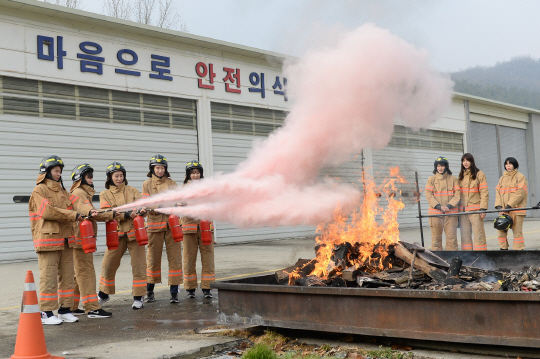 프로배구 올스타 선수들은 24일 천안시 중앙 소방학교에서 '1일 소방교육 체험'을 가졌다.
