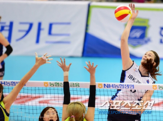 IBK기업은행은 최근 흐름이 좋은 GS칼텍스를 맞아 고전을 면치 못했다. 1세트는 팽팽한 시소게임이었지만 GS칼텍스가 10개의 범실을 저지르며 자멸했다.