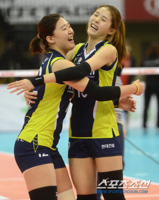 이어진 2세트는 박빙이었다. 세트 초반 분위기는 IBK기업은행 쪽이었다. 하지만 현대건설이 전열을 정비했다. 1-3으로 뒤졌던 스코어를 양효진의 시간차로 5-4로 역전했다. 이후 공격을 주고 받으며 시소게임이 벌어졌다. 세트 막판 에밀리가 불을 뿜었다. 에밀리는 연속으로 퀵오픈, 오픈을 때려 넣어 21-19를 만들었다. 이후 양효진의 시간차와 황연주의 퀵오픈을 묶어 2세트를 따냈다.