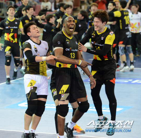 시몬의 괴력은 포스트시즌에서 증명됐다. 정규리그에서 버텨온 아픈 무릎이 한계에 다다랐지만 팀을 위해 참았다. 팀 의무진은 진통주사를 권했지만 거절했다. 통증을 잊고 경기를 뛰다보면 자신도 모르게 부상을 악화시킬 수 있다고 판단했다. 시몬은 부상을 기술과 풍부한 경험으로 극복했다. 결국 팀을 챔피언결정전까지 올려놓은 시몬은 '1강'으로 평가받았던 삼성화재를 꺾고 창단 첫 우승을 안겼다. 송명근 송희채 이민규 등 국내 선수들도 돋보였지만, 시몬의 활약을 빼고 우승을 논할 수는 없었다.