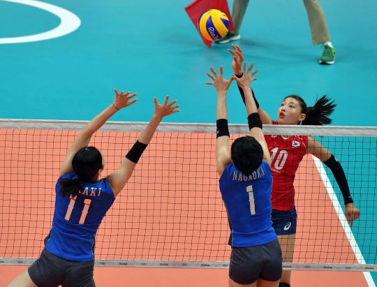 에이스 김연경은 한-일전에서 매서운 손끝을 자랑하며 팀을 승리로 이끌었다.