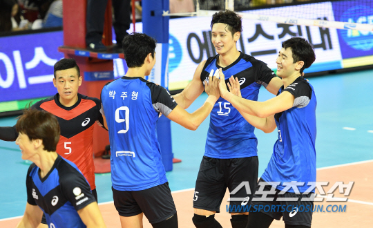 첫 라이벌 대결서 완패한 김세진 감독은 "서브 리시브 리듬을 잡지 못했다. 공격을 주고 받는 과정에서도 블로킹 싸움에서 밀렸다"며 "결국 높이와 블로킹이 부족했다"며 입맛을 다셨다.