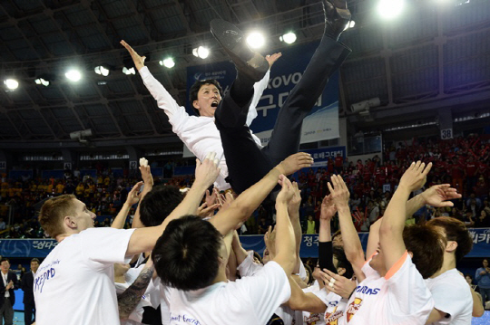 경기 뒤 신 감독은 "헹가래를 오랜만에 받아본다"며 기쁨을 감추지 않았다.
