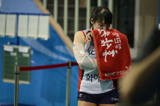 KGC인삼공사 관계자는 4일 "자기공명촬영(MRI) 검사 결과 오른쪽 팔꿈치 인대 손상 진단을 받았다"며 "다행히도 뼈에 이상이 있는 것은 아니다. 다만 한 달 정도 팀에서 이탈할 것으로 보인다"고 전했다.