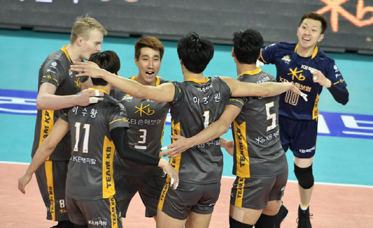 KB손해보험이 '우승후보' 대한항공을 잡고 시즌 첫 승리를 챙겼다.