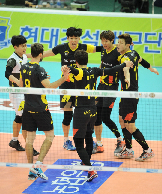 시간이 갈수록 열기가 더해졌다. 4세트는 접전이었다. 7-7로 맞섰다. 세트 후반으로 가면서 OK저축은행의 뒷심이 빛났다. 송희채가 펄펄 날았다. 송희채의 공격을 마지막으로 OK저축은행이 4세트 승리를 거뒀다.