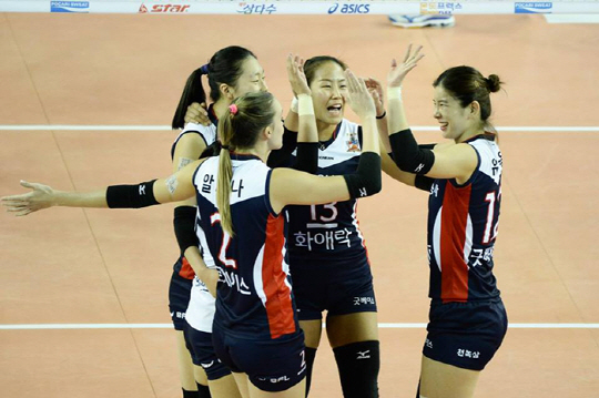 시작은 KGC인삼공사가 좋았다. 1세트에만 서브에이스 4개를 합작하며 상대 수비를 흔들었다. 여기에 외국인 선수 알레나가 11점을 몰아치며 1세트를 25-20으로 챙겼다.