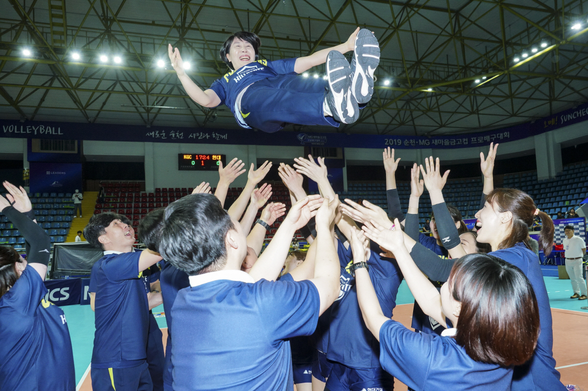 현대건설은 28일 전남 순천 팔마실내체육관에서 열린 2019년 순천·MG 새마을금고컵 여자프로배구대회 KGC인삼공사와의 결승전에서 세트스코어 3대2(25-18, 25-18, 20-25, 23-25, 18-16)로 이겼다. 현대건설은 컵대회 5전승으로 우승 트로피를 들어 올렸다. 2006년, 2014년에 이어 컵대회 세 번째 우승이다.