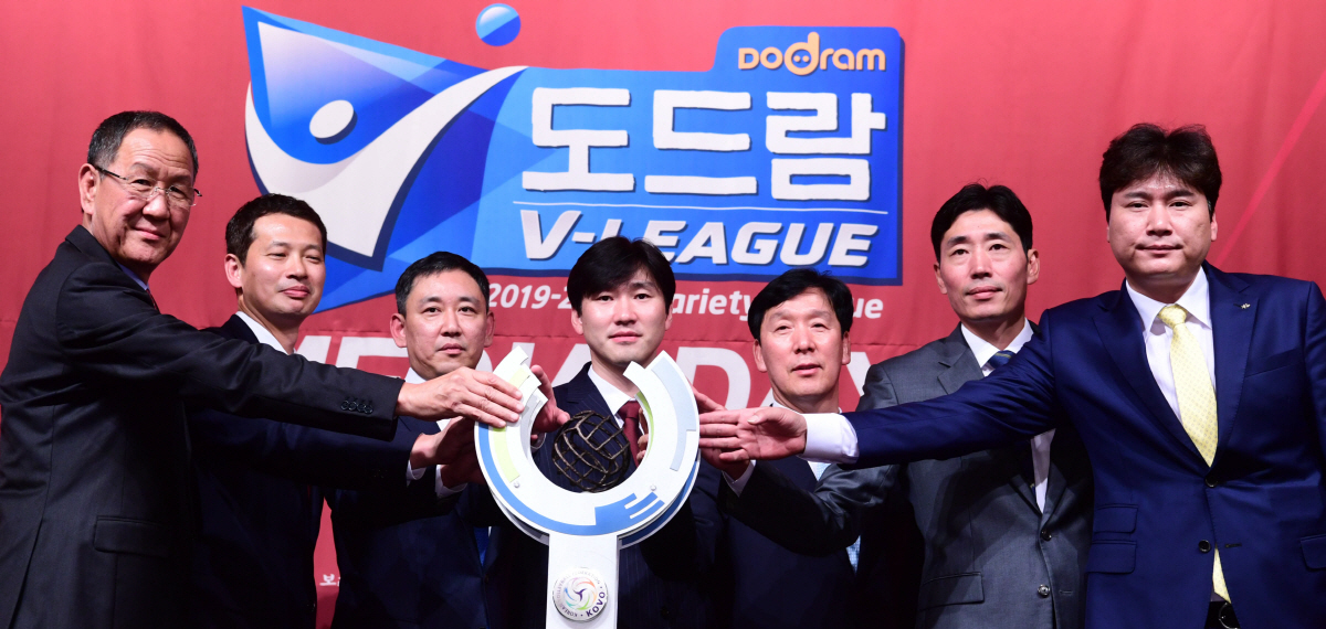 2019-2020 프로배구 V리그 남자부 미디어데이가 10일 청담동 리베라호텔에서 열렸다. 각팀 감독과 대표선수들이 포즈를 취하고 있다. 청담동=최문영 기자 deer@sportschosun.com /2019.10.10/
