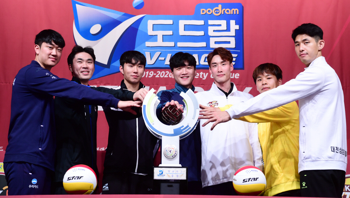 2019-2020 프로배구 V리그 남자부 미디어데이가 10일 청담동 리베라호텔에서 열렸다. 프로배구 각팀 대표 선수들이 포즈를 취하고 있다. 청담동=최문영 기자 deer@sportschosun.com /2019.10.10/