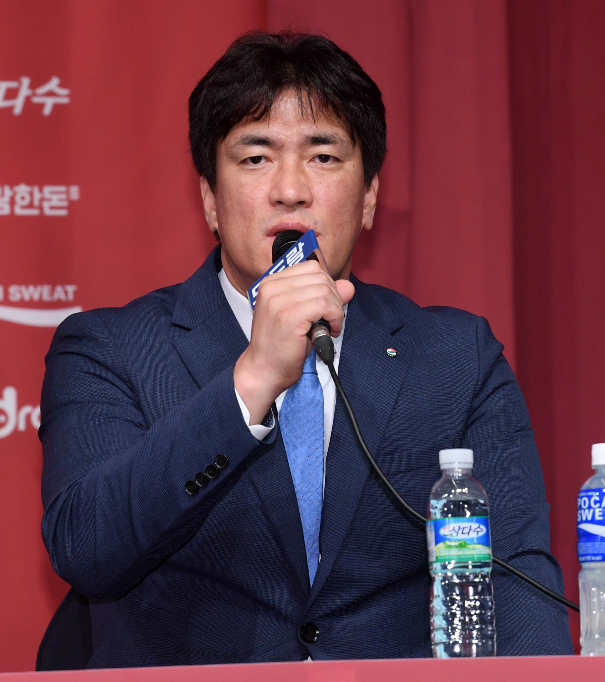 2019-2020 프로배구 V리그 여자부 미디어데이가 17일 서울 청담동 리베라호텔에서 열렸다. 이날 미디어데이에는 흥국생명 박미희 감독, 이재영, 루시아, 한국도로공사 김종민 감독, 문정원, GS칼텍스 차상현 감독, 강소휘, 러츠, IBK기업은행 김우재 감독, 표승주, 어나이, 현대건설 이도희 감독, 이다영, 마야, KGC인삼공사 서남원 감독, 오지영, 디우프가 참석했다. 인사말을 하는 김종민 감독의 모습. 청담동=허상욱 기자 wook@sportschosun.com/2019.10.17/