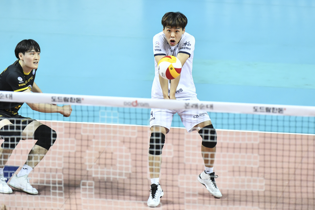 1세트는 역전과 재역전 끝에 KB손보가 가져갔다. KB손보는 9-8로 앞선 상황에서 상대의 강서브에 리시브가 흔들린 뒤 나경복과 황경민의 공격에 역전을 당했다. 양팀 서브 실패로 팽팽함이 이어진 가운데 KB손보는 1~2점차로 끌려갔다. 17-18로 뒤진 상황에선 황택의가 디그한 공을 우물쭈물하면서 아무도 토스하지 못하는 실책을 범하고 말았다. 그러나 세트 막판 집중력이 빛났다. 높이를 이용해 23-23으로 따라붙은 KB손보는 승부를 듀스로 몰고간 뒤 브람의 연속 공력으로 기선을 제압했다.