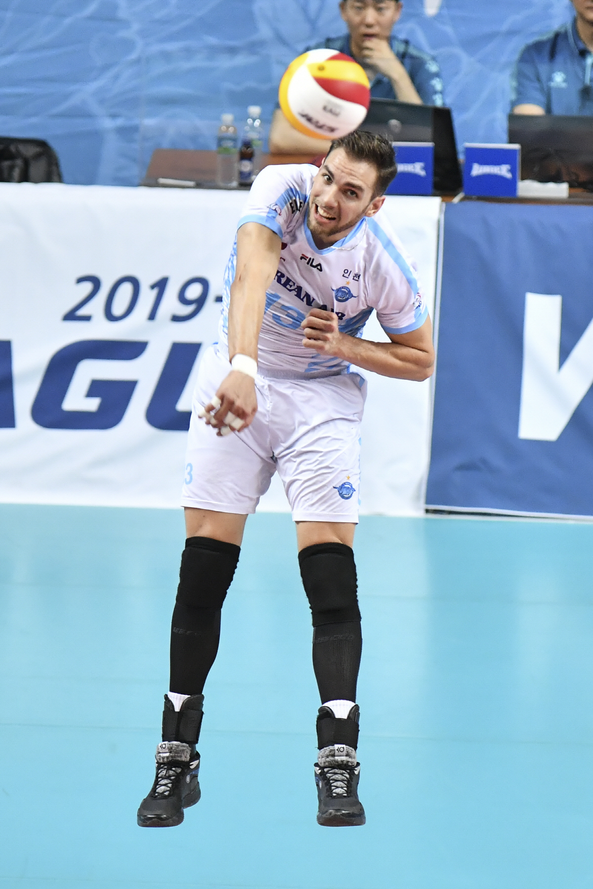 31일 서울 장충체육관에서 열린 우리카드와의 2019~2020시즌 도드람 V리그 남자부 1라운드 원정경기에서 대한항공의 외국인 공격수 비예나가 강서브를 시도하고 있다. 사진제공=KOVO
