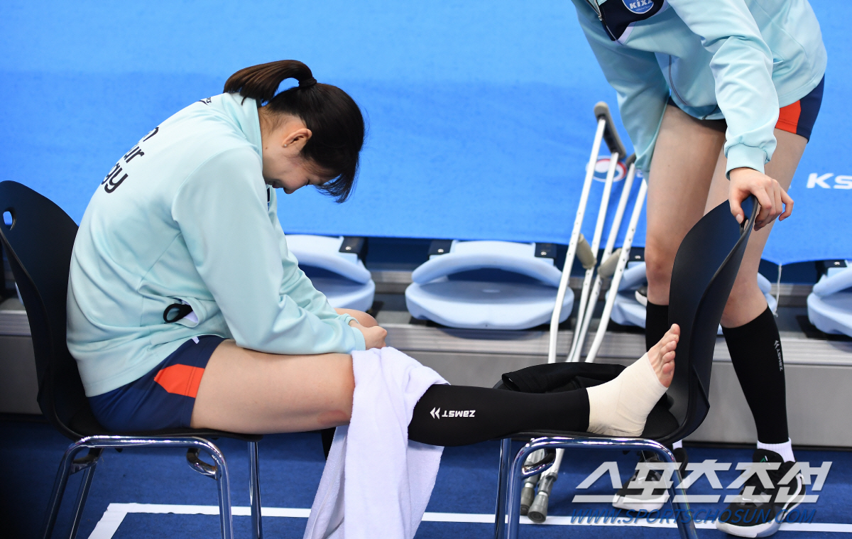 이소영은 17일 열린 2019∼2020 도드람 V리그 흥국생명과의 경기서 1세트 막판 수비 도중 발목 부상으로 교체됐다.