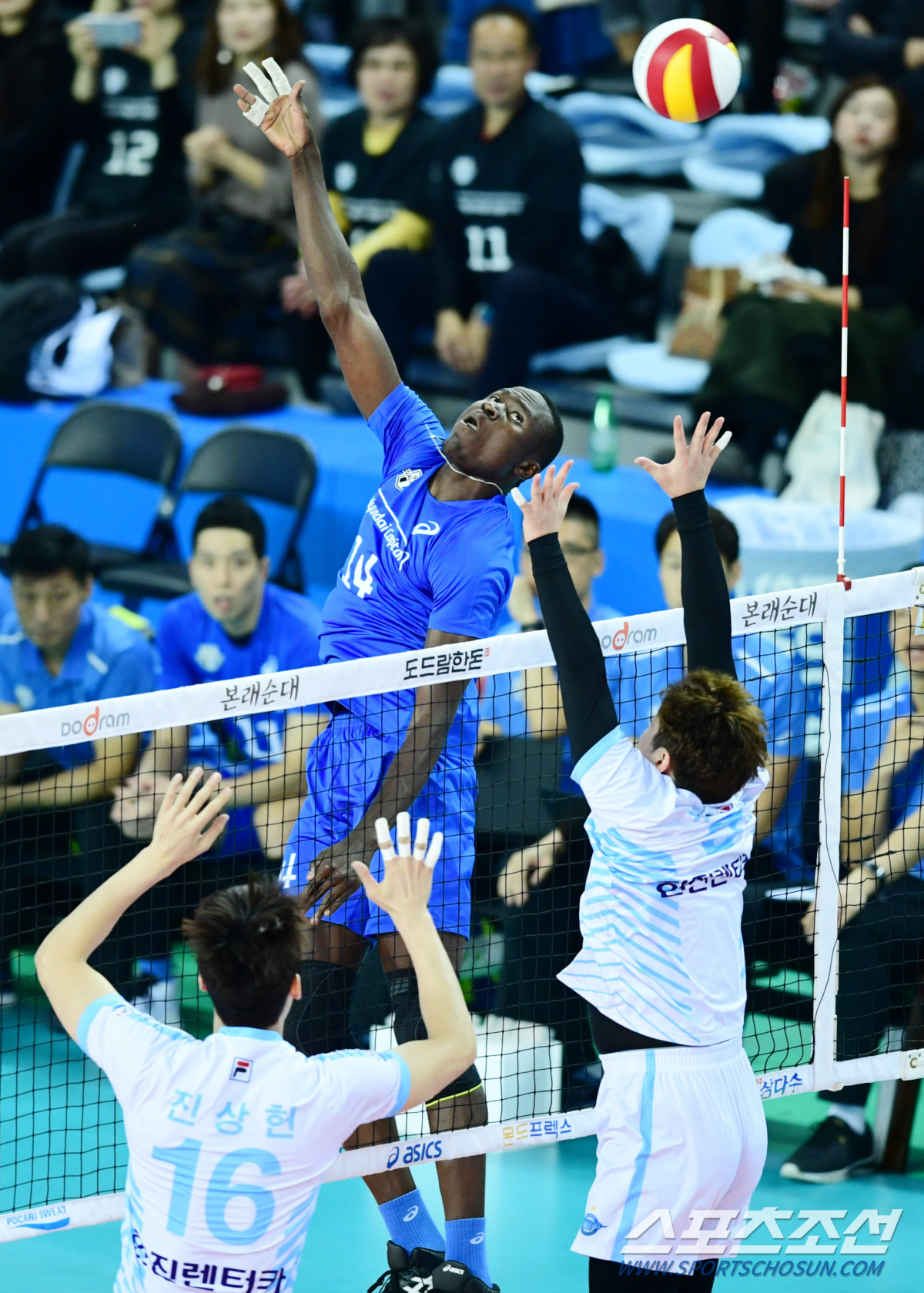 [인천=스포츠조선 김진회 기자] 현대캐피탈이 대한항공의 라운드 전승을 막아냈다. 대체 외국인 공격수 다우디 오켈로(24)는 강팀에도 강했다.