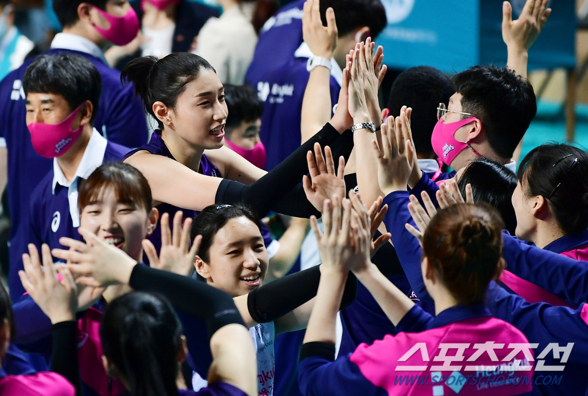 2020-2021 V리그 여자부 GS칼텍스와 흥국생명의 경기가 21일 서울 장충체육관에서 열렸다. 흥국생명이 세트스코어 3-1로 승리했다. 김연경 등 선수들이 기쁨을 만끽하고 있다. 장충체=정재근 기자 cjg@sportschosun.com