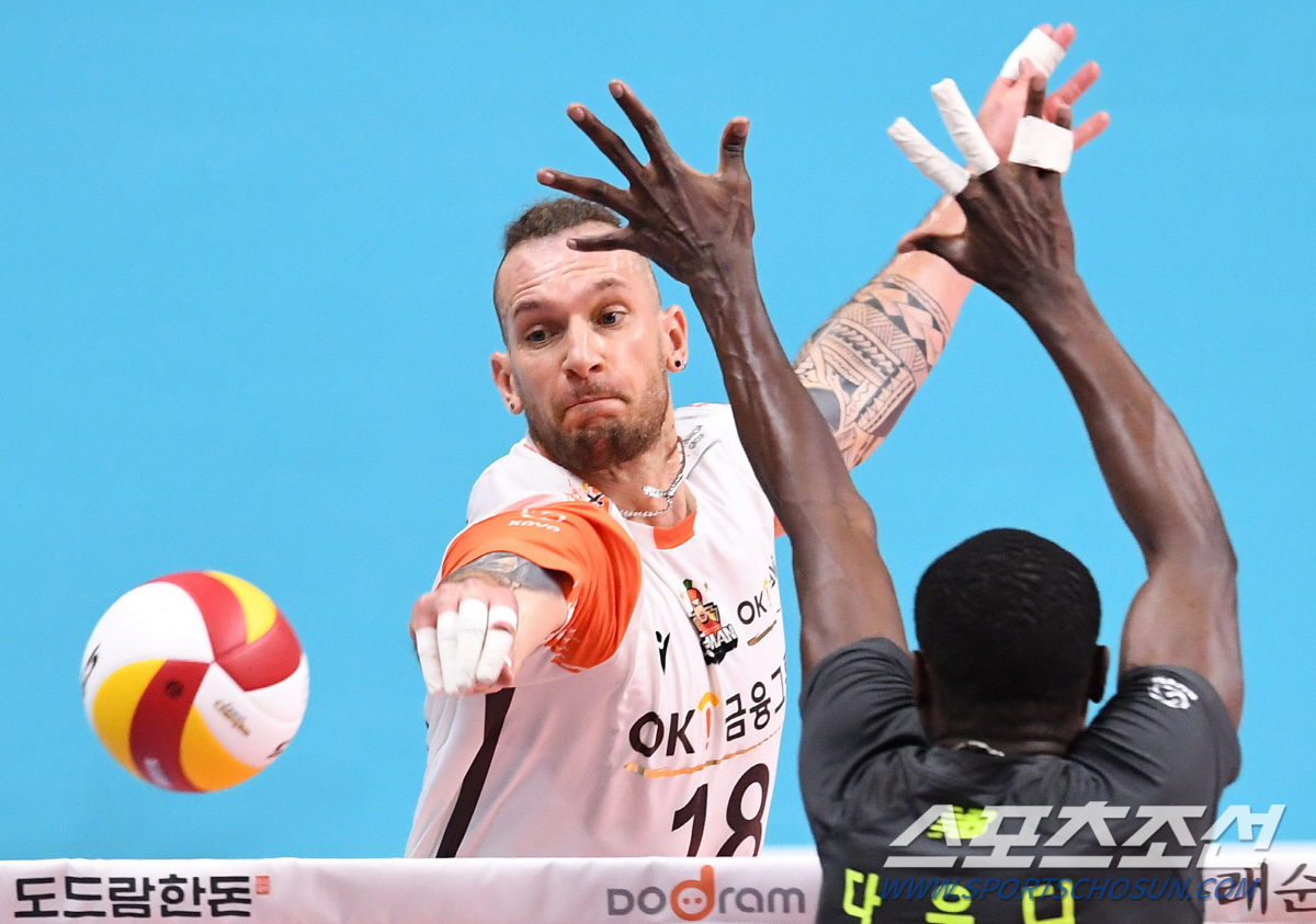 [스포츠조선 송정헌 기자] 남자배구 OK금융그룹 펠리페 알톤 반데로(32)가 팀을 개막 3연승으로 이끌었다.