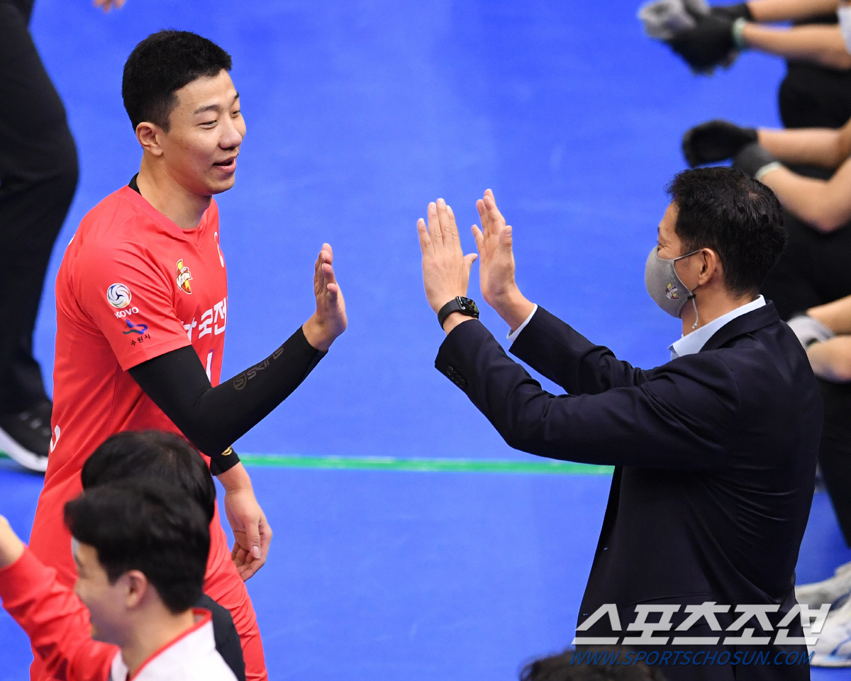트레이드를 통해 현대캐피탈 주전 세터가 된 장신세터 김명관에 대해선 "최태웅 감독을 만나 얼마되지 않았지만 시도가 과감해져 칭찬해주고 싶다. 장신 세터만의 매력이 있는 것 같다"고 전했다. 천안=김진회 기자 manu35@sportschosun.com
