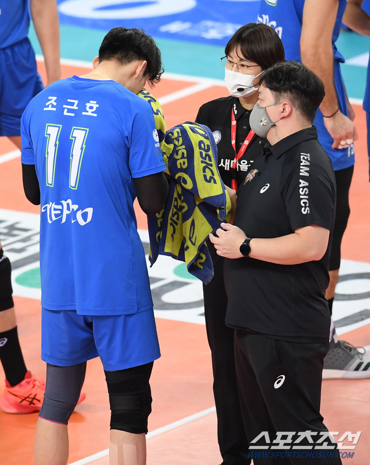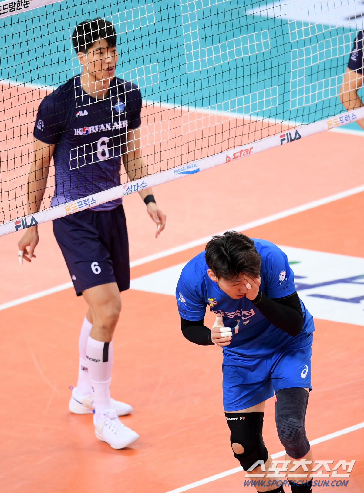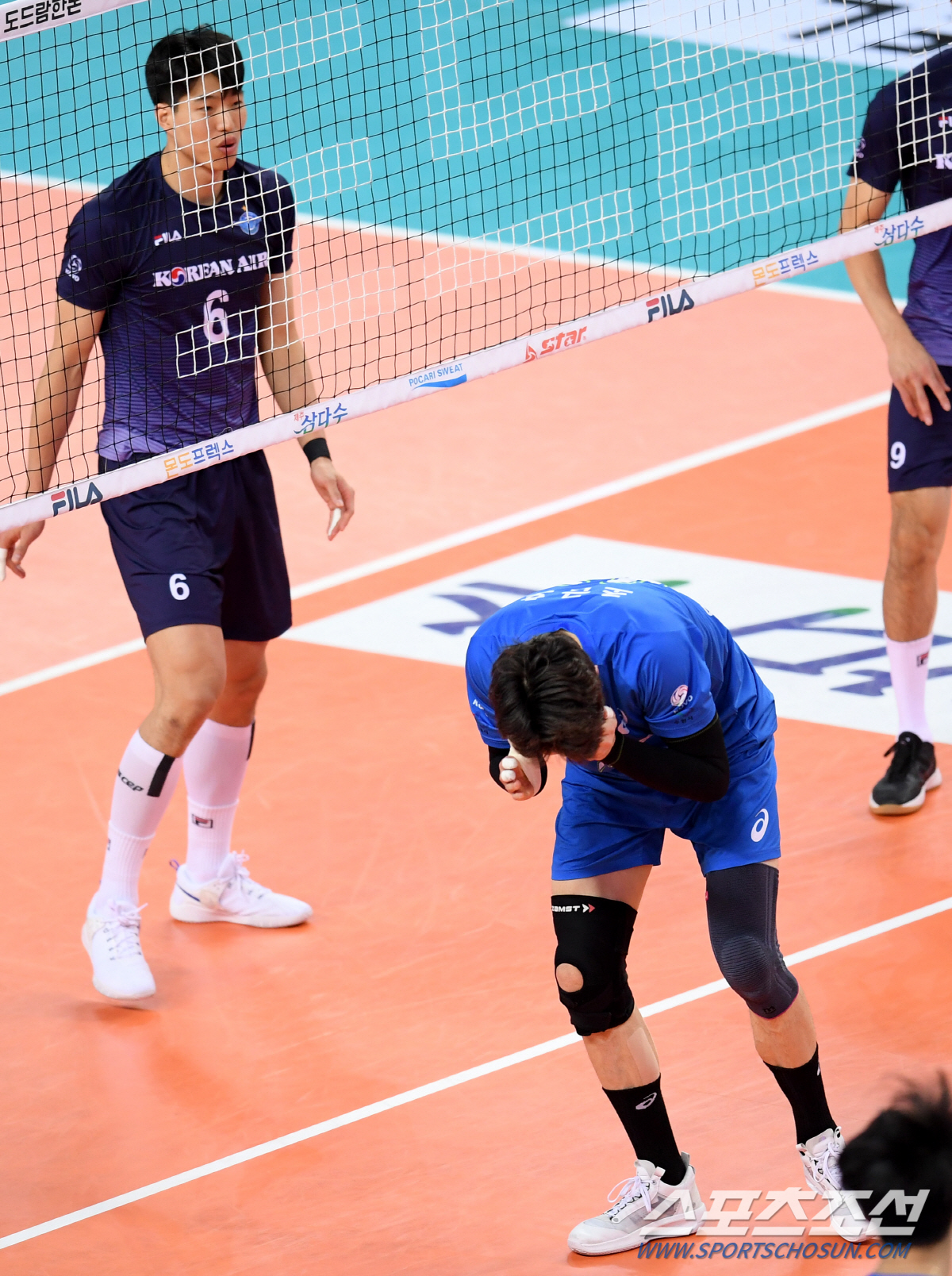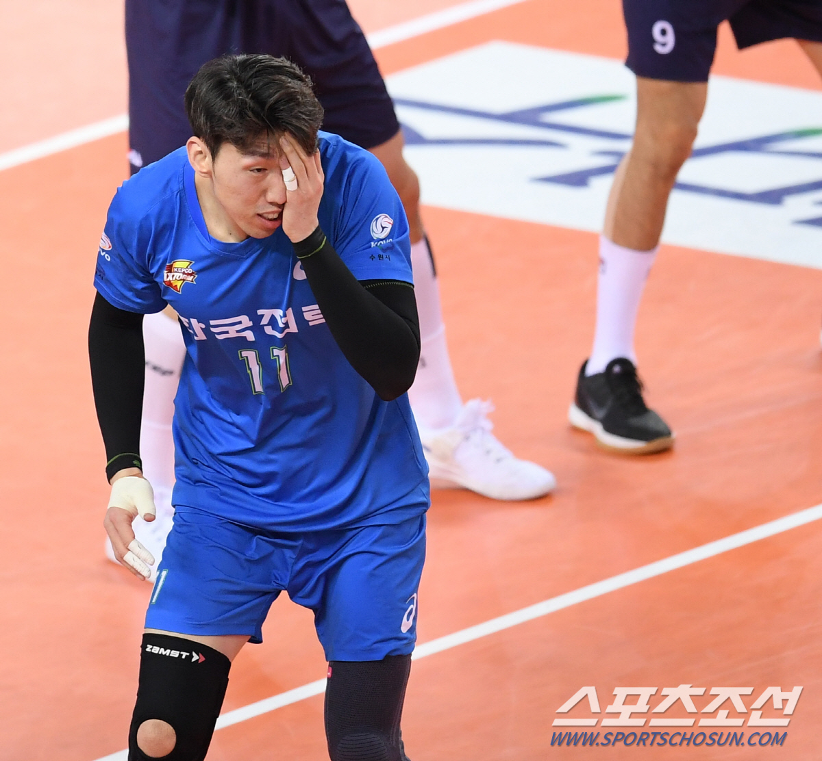 [인천=스포츠조선 허상욱 기자] 한국전력 조근호가 강력한 스파이크를 얼굴에 맞는 아찔한 경험을 했다.