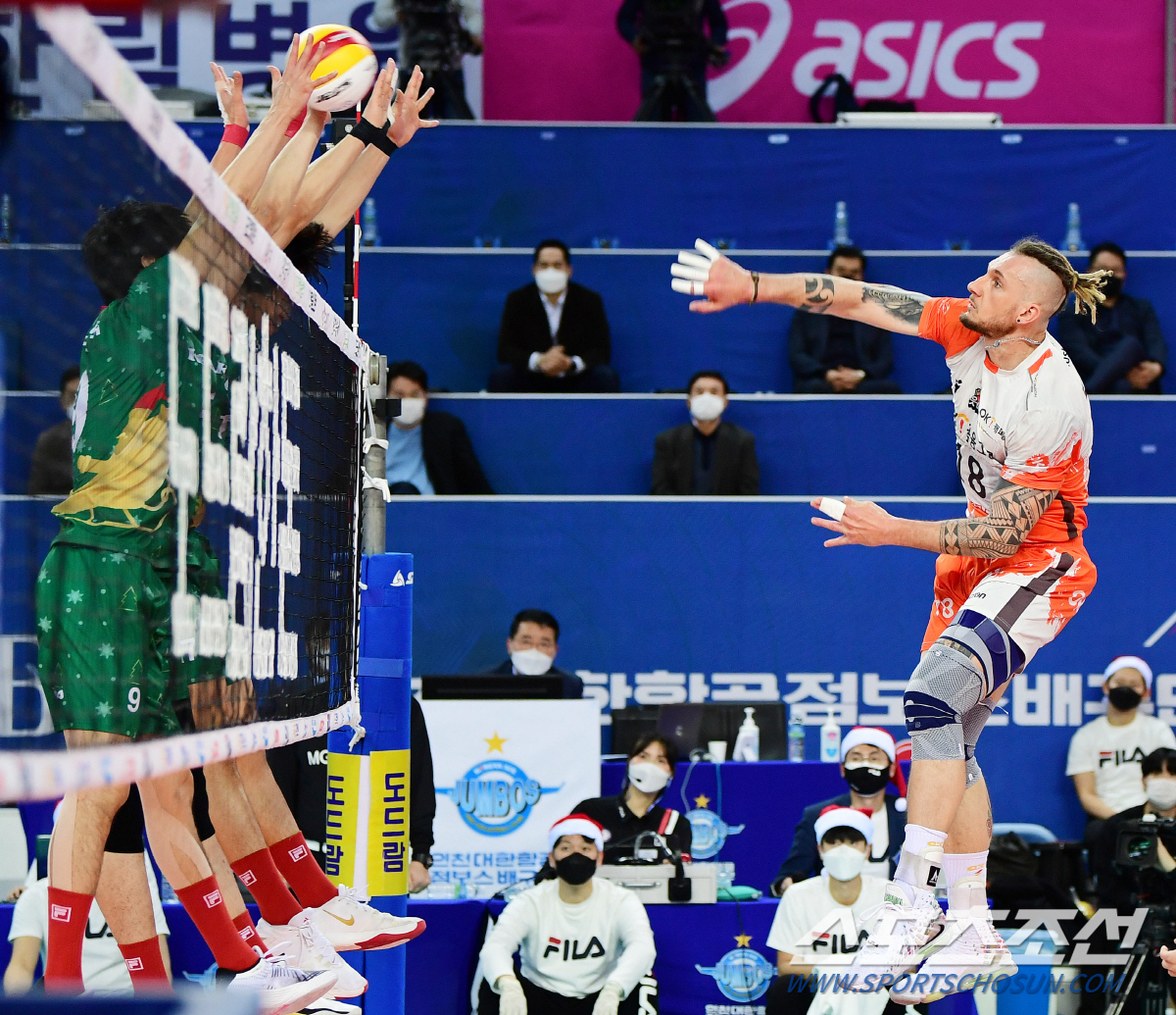 대한항공이 23일 인천계양체육관에서 열린 OK금융그룹과의 경기에서 풀세트까지 가는 접전 끝에 3대2로 승리했다.
